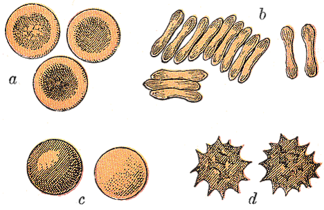 При различных заболеваниях крови возможно изменение цвета эритроцитов, их размеров, количества, а также формы; они могут принимать, например, серповидную, овальную, сферическую или мишеневидную форму.