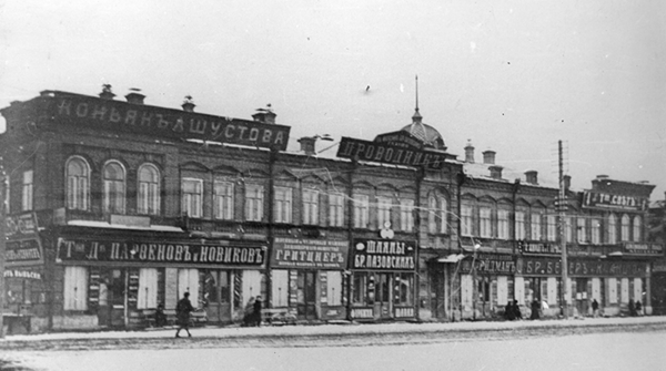 По заказу екатеринбургского мещанина Г. М. Александрова в 1882 году были построены два двухэтажных полукаменных дома. В 1884 году к этим домам были достроена двухэтажная пристройка. К 1900 году усадьба принадлежит Жукову. Здесь работали магазины мужского платья А. Шалахина, шляпный братьев Пазовских, контора и склад акционерного общества «Братья Белер и К°». Был открыт кинотеатр Рона, доходный дом братьев Макаровых[2][3].