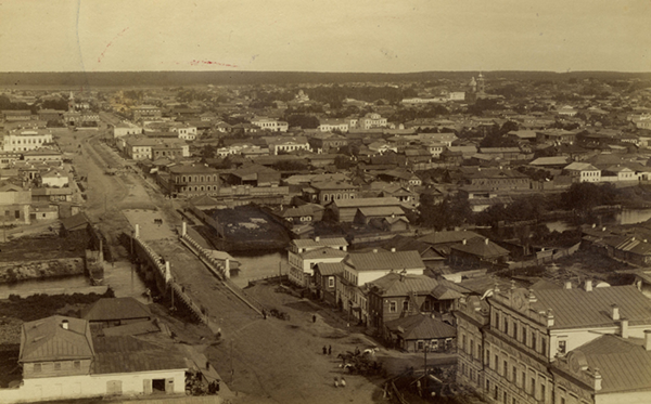 В 1880-е годы усадьба за Каменным мостом, построенном в 1844 году между левым берегом реки Исеть и улицей 2-й Береговой, принадлежало «мещанской вдове» Е. Н. Суставовой. На углу со 2-й Береговой вдова имела небольшой деревянный дом, где располагалась пивная лавка К. Гребенькова. От дома до реки тянулся огород хозяйки, обнесённый высоким забором[1].