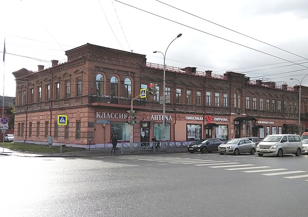 Двухэтажный кирпичный дом в центральной части города на левом берегу реки Исеть у Каменного моста. Дом располагается на перекрёстке улицы Малышева (Покровский проспект) и улицы Горького (2-я Береговая улица). Северный и восточный фасады вытянуты по красной линии улиц, а западный фасад — вдоль реки Исеть. Были возведены по проекту архитектора М. Л. Реутова два двухэтажных полукаменных дома с номерами для приезжих, кондитерской, булочной и трактиром. В 1884 году эти дома были соединены двухэтажной вставкой и к центральной части южного фасада сделана пристройка. Первый этаж имеет несущие кирпичные стены и деревянные перекрытия. Второй этаж из брёвен облицован снаружи кирпичом. Цоколь кирпичный, со стороны восточного фасада выложен гранитными плитами. Уличные фасады — фронтально-плоскостные, в кирпичном стиле с использованием узорчатой кирпичной кладки. В декоре оформлены классические формы: аттики, сандрики, балясины. Фасад по улице Малышева состоит из двух корпусов и связки. Углы и центральная часть главного корпуса оформлены лопатками с аттиками в венчании. На их оси во втором этаже арочные окна с архитравами и замковыми камнями. Боковые проёмы с балконами с ажурной кованой решёткой цветочного орнамента. Под центральным сдвоенным окном находится парадный вход с двустворчатой дверью и с крыльцом в три ступени, навесом с подзором на витых чугунных столбиках. Остальные окна второго этажа дугообразны с сандриками. По вертикали фасад разграничен междуэтажным поясом и карнизом. Фасад второго корпуса и связки входа выделены лопатками. Окны второго этажа и тройное окно дугообразны. Сверху над окнами расположены бровки, а снизу — пояс лекального кирпича. Завершает фасад многопрофильный карниз и парапетные столбики над ним. Западный и восточный фасады разграничены двумя рядами окон. Южный фасад пристройки укреплён контрфорсами. Первый этаж главного корпуса разделён на две части. Восточная часть состоит из двух торговых зала и подсобного помещения. Больший из залов вытянут вдоль северного фасада и имеет два входа с улицы. В его противоположной стене устроена фигурная арка, ведущая во второй зал, прилегающий к южному фасаду. Западная часть здания, как и второй этаж, имеет коридорно-осевую систему. Вход в помещения располагается с улицы через прихожую, а на второй этаж — по мраморной центральной лестнице как и в подсобную, расположенной в пристройке. В интерьерах комнат сохранились филёнчатые наличники окон и дверей. Стены и потолок обрамлены тягами. Одно из первых гостиничных зданий Екатеринбурга конца XIX века, построенное в кирпичном стиле с классическими элементами декора[4].