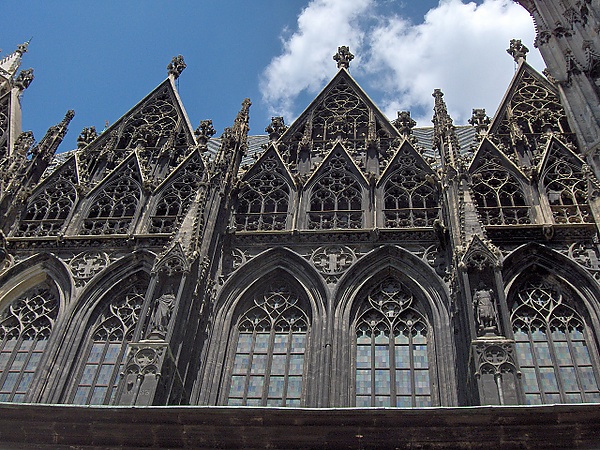 В 1852 году Леопольд Эрнст начинает работу над реставрацией капеллы в юго-западной части нефа собора Святого Стефана в Вене по поручению принца Алоиса II Лихтенштейнского, что также инициировало восстановление всего нефа собора. 31 мая 1853 года Леопольду Эрнсту, как архитектору и инженеру Императорского Королевского министерства торговли k.k. (нем. Handelsmnisteriums), успешно зарекомендовавшим себя в работе с готической архитектурой, было поручено построить ряд фронтонов для нефов собора, из которых только юго-западный, так называемый «щит Фридриха»