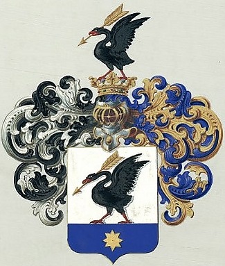 В серебряном щите черный лебедь с червлеными глазами, клювом и лапами держит в клюве золотую стрелу. В лазуревой оконечности щита золотая восьмиконечная звезда. Над щитом дворянский шлем с короной. Нашлемник: черный лебедь с червлеными глазами, клювом и лапами держит в клюве золотую стрелу. Намет: справа черный с серебром, слева лазуревый с золотом.