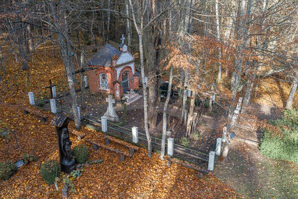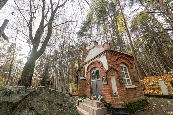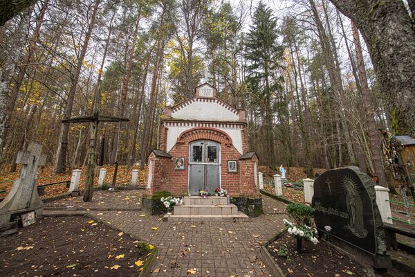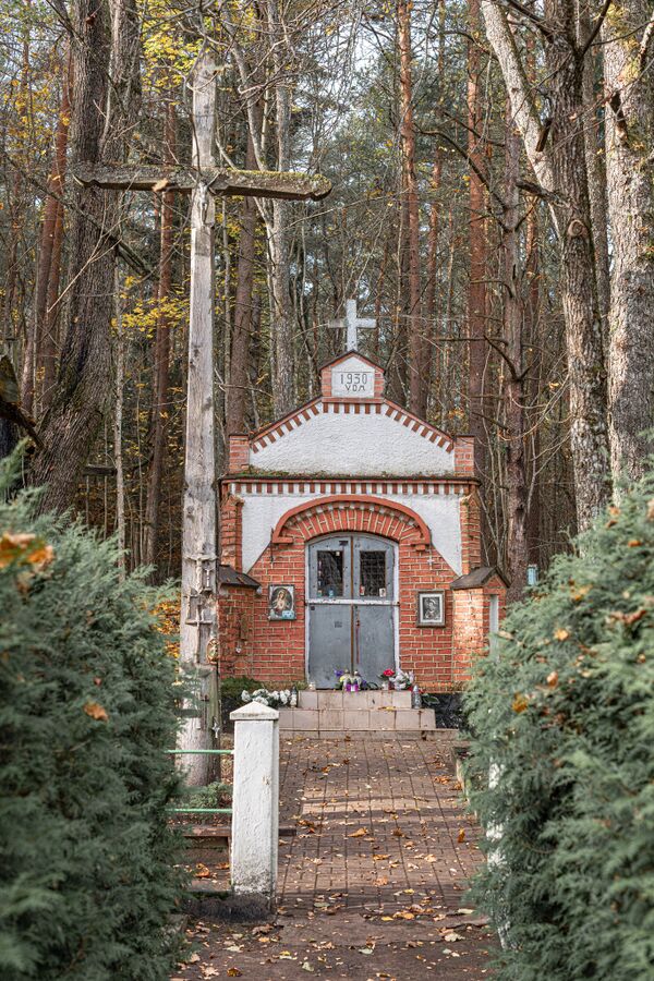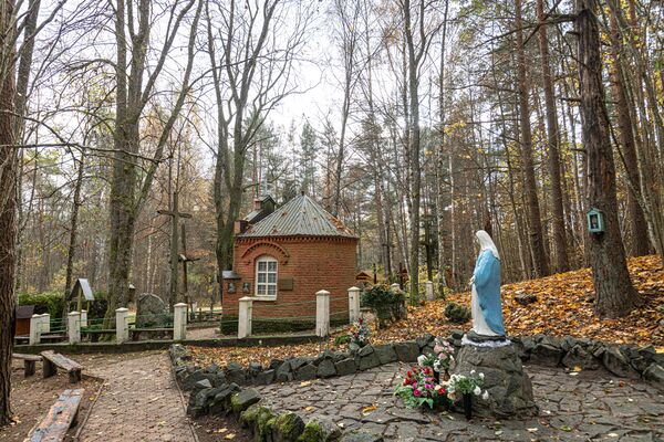 Часовня построена в 1926 г., когда жителям деревни Лаздининкай у родника явилась Пресвятая Дева Мария. В 1930 г. часовню перестроили и значительно увеличили[1].