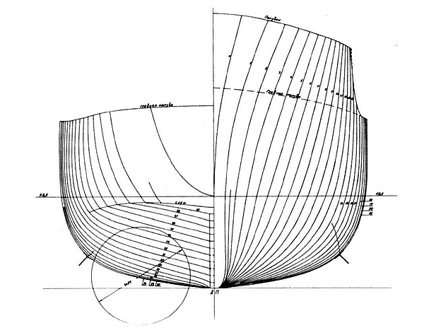 В окончательно принятом теоретическом чертеже эскизного проекта ЦКБ-32 выполнило оформление выхода гребных валов в виде «штанов» (проектант считал, что это способствовало повышению пропульсивного коэффициента). Недостатком теоретического чертежа ЦКБ-32 являлась некоторая валкость корпуса — начальная поперечная метацентрическая высота при нормальном водоизмещении (без учёта влияния свободных поверхностей) составляла 0,98 м[19].