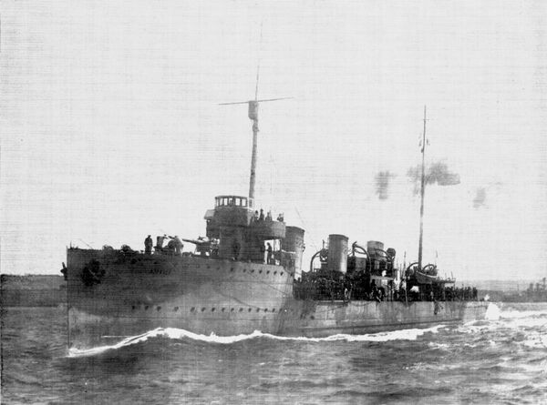 Во время Первой мировой войны стороны, при весьма незначительном использовании крупных боевых кораблей, активно использовали эсминцы для набеговых операций, патрулирования, постановки минных заграждений. Первый выстрел на море в этой войне совершил 5 августа 1914 г. эсминец «Ланс» британской 3-ей флотилии при столкновении с немецким вспомогательным минным заградителем «Кёнигин Луизе». Первым британским затонувшим кораблём стал лидер 3-ей флотилии крейсер-скаут «Амфион», подорвавшийся на мине, установленной тем самым минным заградителем.