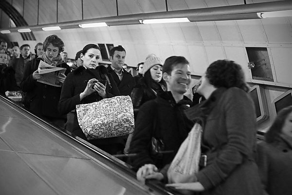 Практически с самого начала те, кто не шёл по эскалатору, а просто стоял, становились справа, чтобы слева пропустить идущих пассажиров. Таким образом перед эскалатором создаётся очередь, так как полностью задействована только правая его сторона. А часть тех, кто идёт вверх по левой стороне — делают это чтобы не ждать очередь — не едут стоя, боясь осуждения сзади идущих. Этот «подземный этикет» соблюдается во многих странах мира и поныне. Когда люди просто стоят и на левой и на правой сторонах — пропускная способность эскалатора гораздо выше, чем когда по левой стороне идут вверх.