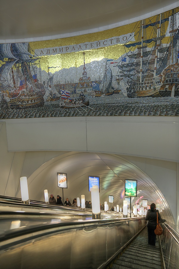 - Самые длинные эскалаторы в мире установлены на станции «Адмиралтейская» Петербургского метрополитена. Глубина залегания станции 86 м. Эскалаторы установлены последовательно с высотой подъёма 68,7 м и 15,2 м.[9]