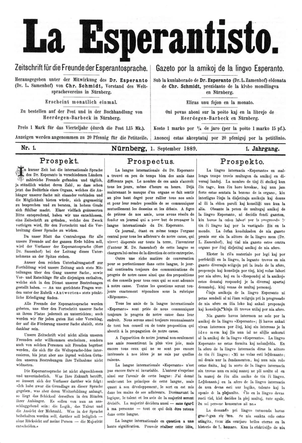 Первое периодическое издание на эсперанто называлось «La Esperantisto» («Эсперантист»; 1889).