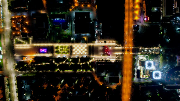 Бульвар, площади и фонтаны, формирующие эспланаду, расположены строго на одной оси. В южной части находятся более низкие общественные здания, в северной — более высотные жилые, расположенные под углом к оси эспланады. Такая планировка позволила достичь большей солнечной освещённости[9].