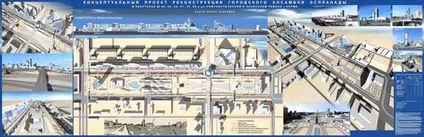 Надземный уровень выполняется в виде регулярного парадного парка. В 2001 году проект фирмы «Викар» стал победителем конкурса на застройку эспланады.