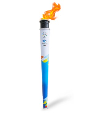 Факел — основной атрибут Эстафеты Огня. Факел — переносное устройство, способное обеспечить продолжительное и интенсивное горение Огня на открытом воздухе при различных погодных условиях. Согласно Концепции Эстафеты Огня во время движения колонны факел будет передаваться от факелоносца к факелоносцу. Передача Огня с факела на факел происходит на каждом четвёртом этапе. Высота факела составляет 75 см. Вес без топлива — 1,2 кг.