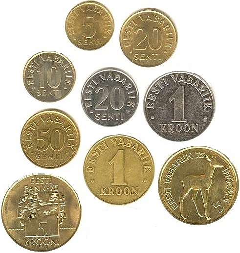 Однокроновая монета, отчеканенная на таллинском заводе Juveel в 1991 году, сыграла на руку живущим в ФРГ эмигрантам из Эстонии: достаточно быстро выяснилось, что по весу и содержанию металлического сплава она полностью соответствует одной немецкой марке, хотя номинально стоит в восемь раз меньше. Лишь после того, как все автоматы для продажи сигарет и пива оказались «закормленными» эстонскими монетами, сплав однокроновой монеты был изменён с белого на жёлтый. Случилось это в 1998 году.[8]