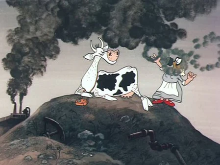 Хозяйка отправила свою корову пастись на мусорную свалку. Корова на ней стала питаться объедками и мусором, пила воду из реки, в которую сливали производственные отходы, дышала воздухом, в который выбрасывали вредные заводские газы. Хозяйка, надев противогаз, привела корову обратно домой и начала её доить. Вместо молока она надоила канистру бензина, залила его в машину и поехала по делам.