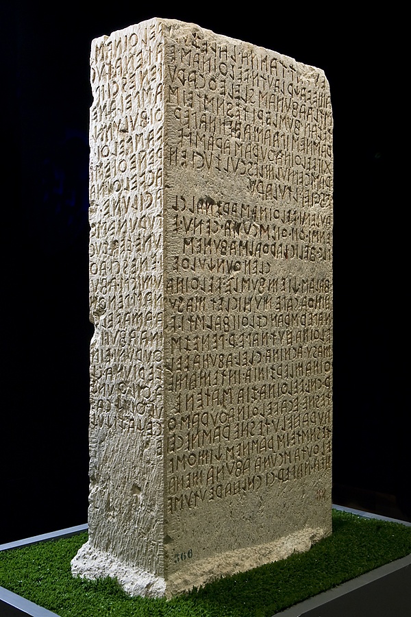 - Пограничный столб из Перуджи (II век до н. э.) содержит информацию о разделе двух земельных участков, содержит 46 строк и 130 слов;