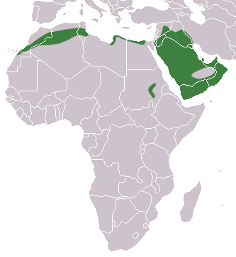 Северная Африка (пустыня Сахара, Тунис, Судан, Египет, Эфиопия), Сирия, Ирак, Иран, побережье Персидского залива.