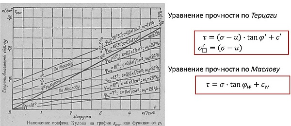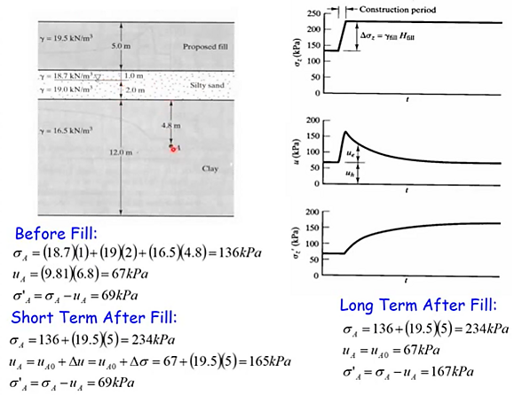 Согласно зависимости полное напряжение в каждой точке константа, в случае если эффективное напряжение растёт-поровое напряжение падает.