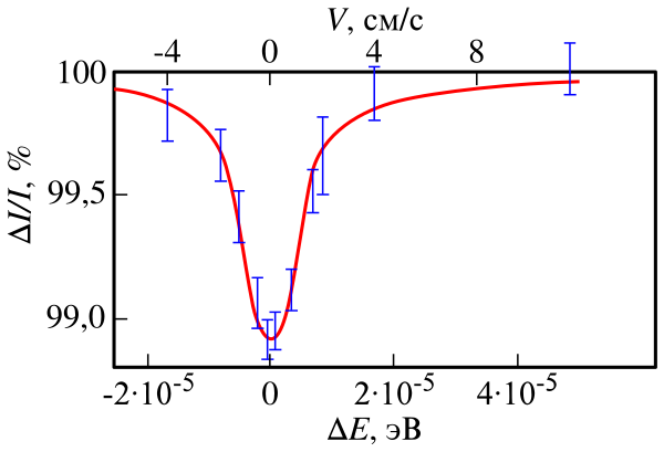 Кун здесь, правда, рассматривал только смещение и уширение линии испускания, не обращая внимания на эффект Доплера и отдачу ядра при поглощении гамма-фотона.