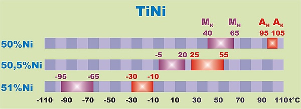 Отсюда следует необходимость строгой выдержки химического состава сплава для однозначного функционального проявления эффекта памяти формы, что переводит металлургическое производство в сферу высоких технологий.