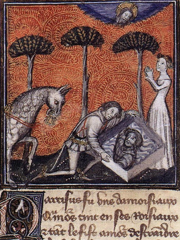 Мифический сюжет о любви Эхо к Нарциссу нашёл отображение в средневековом «Романе о Розе» XIII века. В саду наслаждений герой поэмы Амант находит источник Нарцисса. На плите около источника описана история самовлюблённого юноши. Эхо представлена не нимфой, а благородной дамой. Нарцисс отвергает Эхо. Поведение Нарцисса вызвано грехом гордыни. Горе дамы было настолько велико, что она умерла. Бог услышал предсмертные молитвы Эхо. Любовь юноши к самому себе стало тем проклятием, которое его и погубило. Так он был отомщён за ту любовь, которую отверг. Мораль этого романа, по мнению его авторов, заключалась в том, что жестоких дам, если они доведут до смерти влюблённых в них мужчин, ждёт кара богов[16][17].