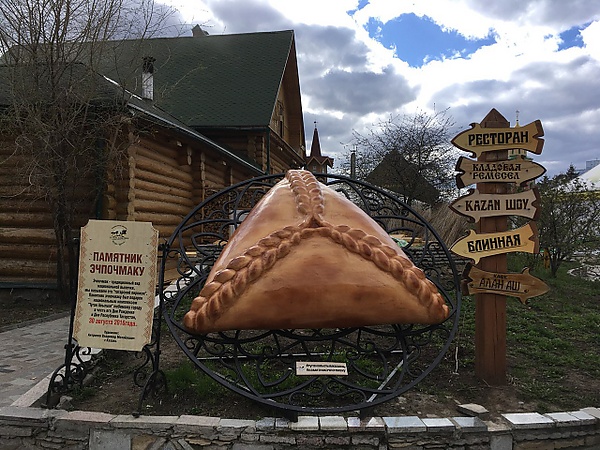 Памятник эчпочмаку установили в 2016 году в Казани. Он стоит на небольшом постаменте, имеет в высоту и ширину около двух метров. Скульптура расположена в национальном комплексе «Туган Авылым» на улице Туфана Миннуллина.