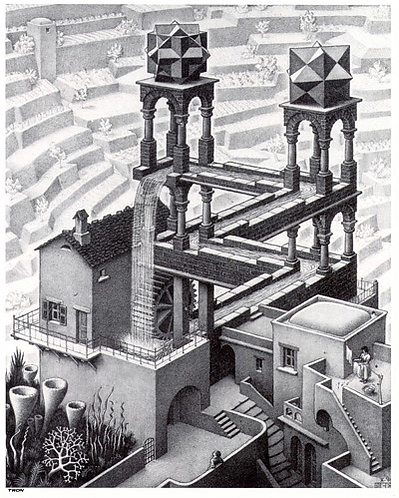 Наиболее полное исследование этого вопроса в творчестве художника освещено в книге Дугласа Хофштадтера «Гёдель, Эшер, Бах: эта бесконечная гирлянда» («Gödel, Escher, Bach: An Eternal Golden Braid»), выпущенной в 1980 году и награждённой Пулитцеровской премией.