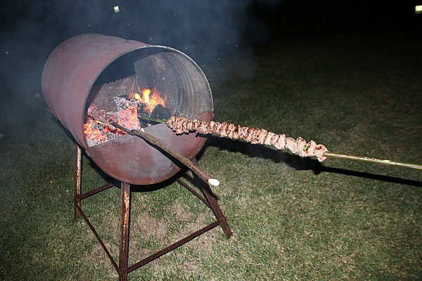 В кафе и ресторанах блюдо подают на шампуре, который висит на специальной подставке.