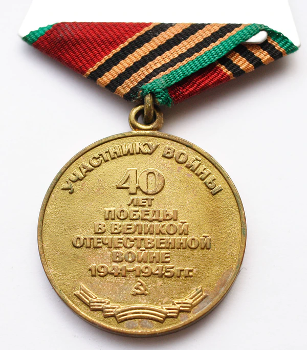 Юбилейная медаль «Сорок лет Победы в Великой Отечественной войне 1941—1945 гг.» учреждена Указом Президиума Верховного Совета СССР от 12 апреля 1985 года в ознаменование 40-летия Победы над фашистской Германией в Великой Отечественной войне 1941—1945 гг.. Авторы рисунка медали — художники А. Г. Мирошниченко и В. А. Ермаков.