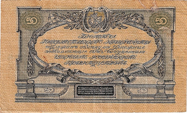 В разгар своих военных успехов, осенью 1919 года, белогвардейцы сталкивались с серьёзной проблемой: в населённых пунктах, оставленных красными, в обращении находились денежные знаки правительства РСФСР (совзнаки), изъять из обращения которые было нереально. По этой причине командование ВСЮР приняло решение об обмене совзнаков на банкноты Юга России, но только до 500 рублей на человека. Отношение красных к денежным знакам ВСЮР было противоположным: советская власть не признавала их платёжеспособности и конвертируемости, вследствие чего белогвардейские деньги постепенно теряли свою стоимость. К моменту эвакуации ВСЮР из Новороссийска в Крым они разделили участь эмиссионера, обесценившись окончательно.