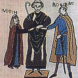 Юдит д’Эврё и Рожер д’Отвиль, сын барона Танкреда д’Отвиля, познакомились в Нормандии. Но брак между ними был невозможен из-за неравного социального положения. Юдит была двоюродной сестрой герцога Вильгельма II Нормандского, будущего завоевателя Англии.