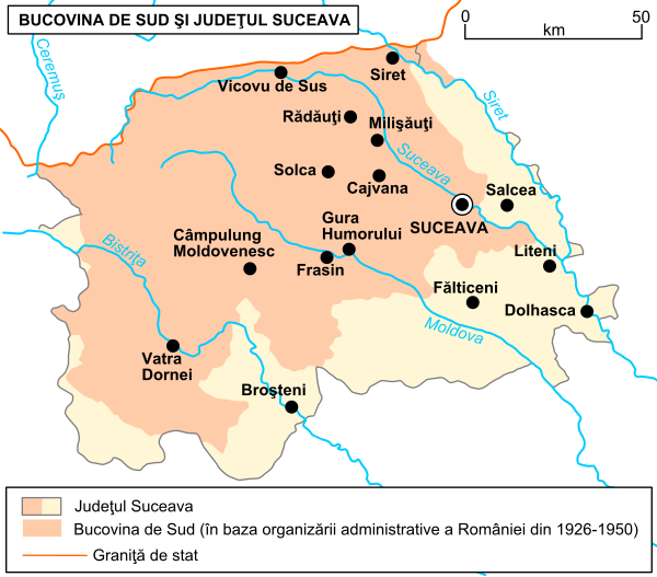 В 1940 года Северная Буковина перешла к СССР и вошла в состав Черновицкой области УССР. Южная Буковина с преимущественно румынским населением осталась в составе Румынии.