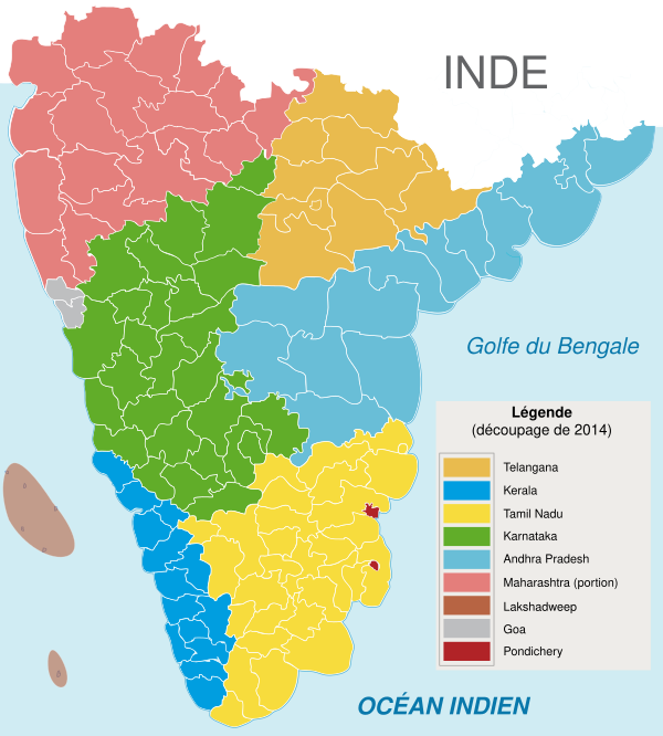 Южная Индия — регион, состоящий из штатов Телангана, Андхра-Прадеш, Карнатака, Керала и Тамилнад, а также союзных территорий Лакшадвип и Пондичерри.