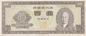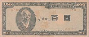| 100 хванов | 156 × 66 мм | Ли Сын Ман | Ворота независимости | 18.12.1953 | |||