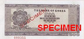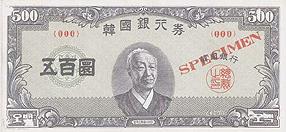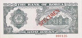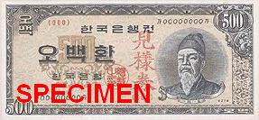 | 500 хванов | 156 × 73 мм | Ли Сын Ман | Номинал | 26.03.1956 | |||