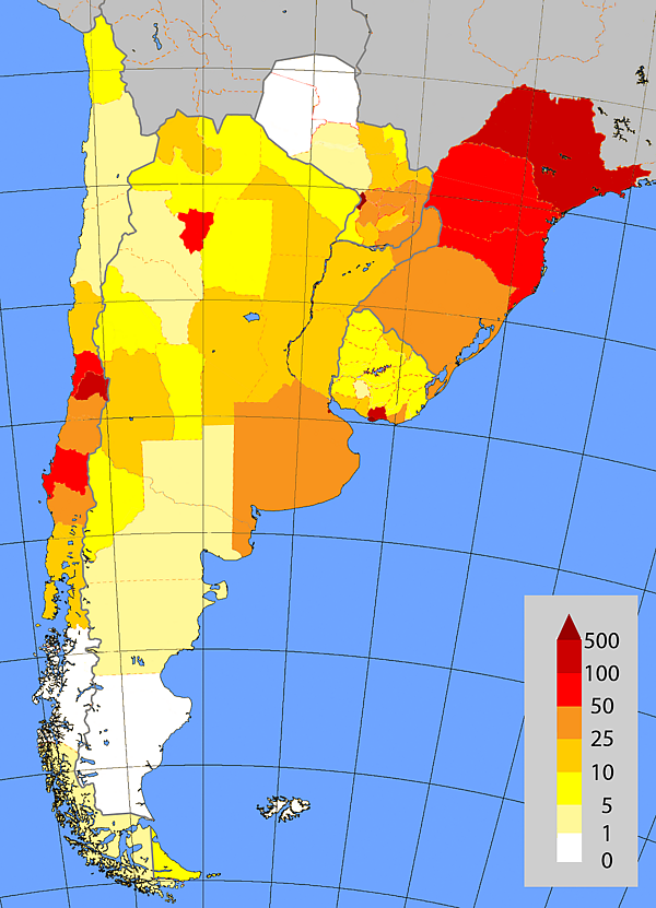 Население относимых к Южному конусу стран: Аргентина (39,3 млн), Чили (16,4 млн) и Уругвай (3,6 млн). Крупные города: Буэнос-Айрес (13,1 млн), Сантьяго (6,4 млн).