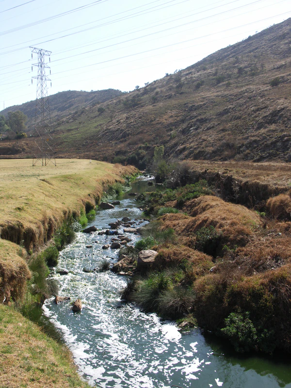 Исток реки находится в Эллис Парке Йоханнесбурга. Её первоначальный источник был на бывшей ферме Доорнфонтейн, но исчез при градостроительстве.[3] Сейчас она выходит на поверхность на пересечении улиц Квин-стрит и Спортс-авеню. Оттуда река течёт через долину Безуиденхоут и запруживается в Бруме. Поворачивает в северном направлении через Бедфордвью и Эденвале. Затем она поворачивает на восток и проходит через Моддерфонтейн, Баклю, Льюкоп Присон, Лоун Хилл, Даинферн и Стейн Сити до впадения в реку Крокодил за Лансерия.[3]