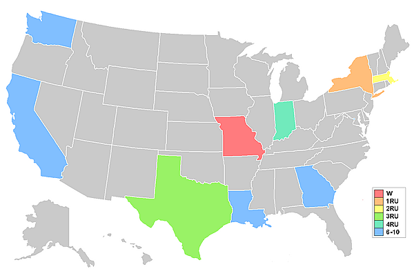 - Между штатами Массачусетс и Калифорнией по баллам вышла ничья (9,32), но судьи проголосовали за то, чтобы представительница штата Массачусетс прошла в пятёрку лучших.