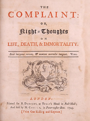 Широкую известность Юнг приобрёл религиозно-дидактической поэмой в девяти книгах «Жалоба, или Ночные размышления о жизни, смерти и бессмертии» (The Complaint, or Night Thoughts on Life, Death, and Immortality, 1742—1745), написанной под впечатлением смерти жены. Стихотворные размышления о горестях жизни, тщете человеческих стремлений стали образцом литературы сентиментализма и положили начало так называемой кладбищенской поэзии.