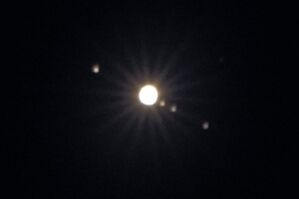 Общий диаметр всей системы спутников Юпитера составляет 24 млн км[124]. Более того, предполагается, что в прошлом спутников у Юпитера было ещё больше, но некоторые из них упали на планету под воздействием её мощной гравитации[125].