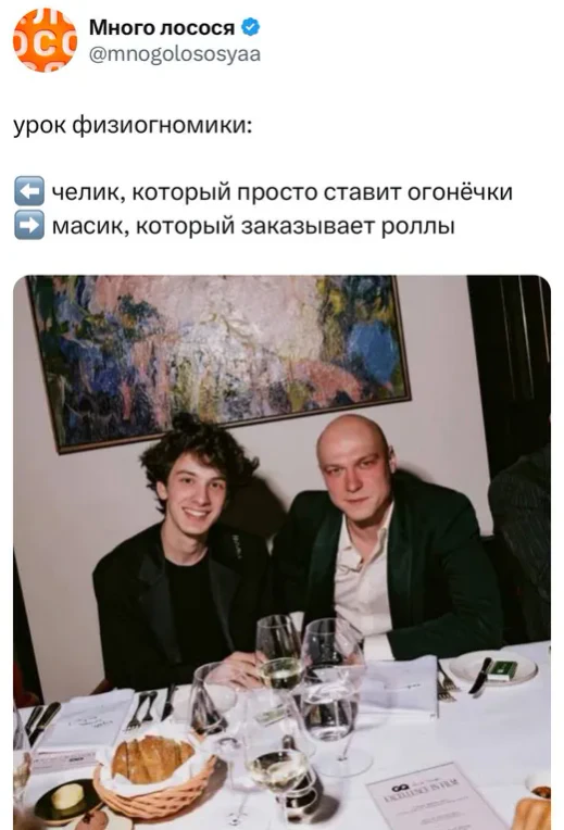 Борисов в пиджаке, рубашке с расстёгнутыми верхними пуговицами и небольшим румянцем и улыбчивый Эйдельштейн вскоре были замечены русскоязычными пользователями социальных сетей — атмосфера на ужине GQ напомнила пользователям традиционное застолье. Так, девушка, опубликовавшая фотографию, добавила к ней подпись «на юбилее тёти Зины».