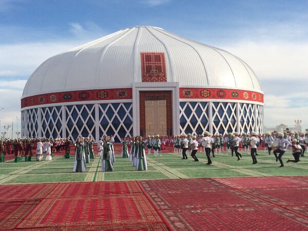 В 2015 году в туркменском городе Мары было построено крупнейшее в Туркменистане здание, стилизованное под юрту на 3000 человек, диаметром в 70 метров и высотой 35 метров[14][15]. Самое крупное в мире здание в виде юрты построено в автономной Кызылсуу-Кыргызской области КНР. Оно имеет три этажа[16]