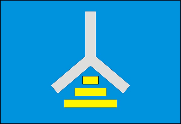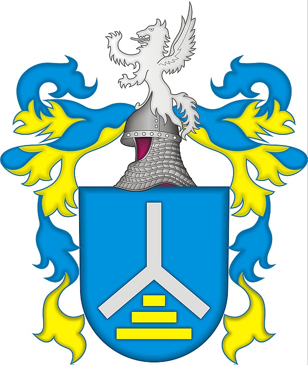 В лазоревом поле опрокинутый и отвлеченный узкий серебряный вилообразный крест, сопровожденный в оконечности также опрокинутыми золотыми гамеидами. Над щитом обычный стальной шлем (шелом с бармицей). В нашлемнике выходящий серебряный волк с таковыми же крыльями и вытянутым хвостом. Намет лазоревый, подложенный золотом[9].