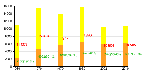| Русские | 469 (5,4 %) | 925 (8,7 %) | ||