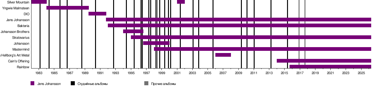 В 1982 году классически обученный Юханссон покинул джаз-фьюжн-группу Slem и присоединился к шведской метал-группе Silver Mountain, где также играл его брат Андерс. В 1983 году он покинул Швецию и обосновался в Калифорнии, став участником группы Ингви Мальмстина Rising Force. С 1993 года - участник шведской группы Bakteria.