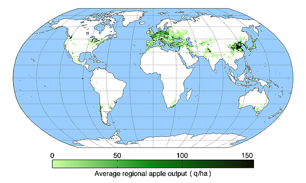 Всемирное производство яблок в 2005 году составляло 55 млн т, стоимостью 10 млрд долл. Китай произвёл две пятых этого объёма. США — второй по величине производитель яблок, — 7,5 % от мирового производства. 60 % яблок, выращиваемых в США, произрастали в штате Вашингтон[22].