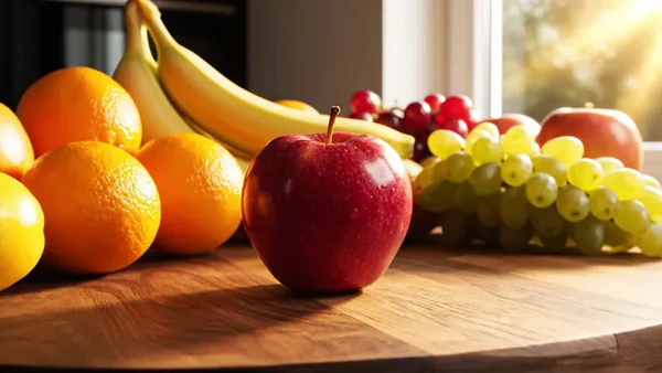 Яблоки растут на плодовых деревьях, обладают округлой формой и ярким оттенком. Их покрывает тонкая кожица, а внутри — хрустящая мякоть с маленькими семенами.