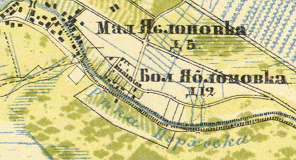 Река (Оккервиль) на которой стояла деревня, на карте 1909 года, также имела название Яблоновка[7].