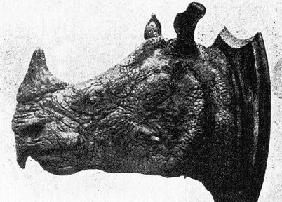 У самцов обычно один рог, у самок вместо рога — лишь низкий вырост[8] Рог при повреждении отрастает вновь. Самец использует рог не для боя, а для разрывания грязи, отгребания растительности при передвижении по лесу или подтягивания растений для еды. Серый или серо-коричневый рог сравнительно мал — обычно до 20 см, максимальная зарегистрированная длина — 27 см.[28] У основания рог шероховатый, толщиной 12×18 см; на длине около 8 см поверхность становится гладкой, толщина — 5,5×7,5 см.[15]
