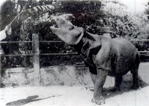 Последний яванский носорог, содержавшийся в неволе, умер в 1907 году в австралийской Аделаиде. Знания о носорогах тогда были настолько слабы, что этот экземпляр выставлялся как индийский носорог[28]. Интересен случай яванского носорога, который в 1838 году был отправлен королю Клунгкунга (Бали), где несколько лет содержался в неволе, а в 1842 году был принесён в жертву и съеден на похоронах короля[15].