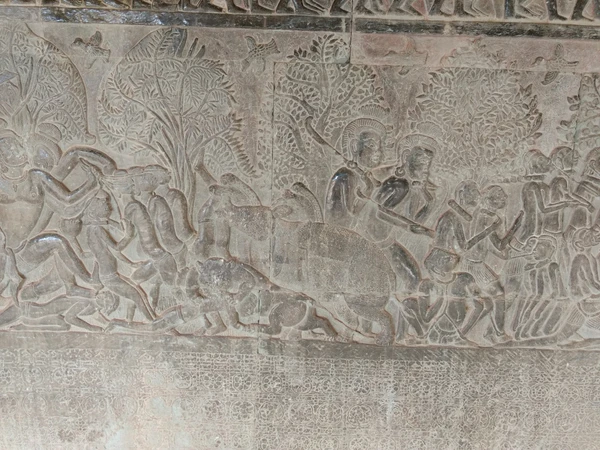 В камбоджийском храме Ангкор-Ват есть три барельефа с изображением яванского носорога. Вероятно, это именно этот вид, а не индийский носорог, так как у всех изображённых животных заметна складка кожи через плечи, продолжающаяся по спине и образующая характерное «седло». На одном из рельефов яванский носорог изображён как вахана, то есть животное, используемое как средство передвижения богов и мифических персонажей. Изображения носорогов как вахан характерны только для кхмерской культуры; например, в индийском индуистском искусстве носороги играют незначительную роль[47].