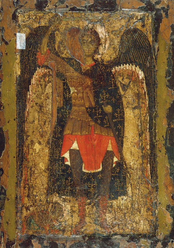 - в Ватиканском свитке книги Иисуса Навина (955—975 гг.) у изображения архангела Михаила рядом с нимбом есть надпись с его именем, а Иисус Навин изображён стоящим и павшим ниц перед Михаилом, стоящим в воинском облачении, с расправленными крыльями и обнажившим свой поднятый меч.